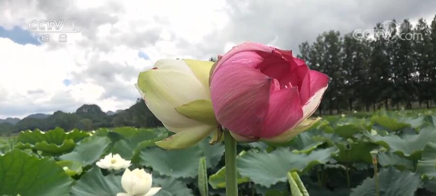 这里就是丘北县的普者黑,312座孤峰星罗棋布,83个溶洞千姿百态,54个湖泊相连贯通,还有4万亩高原喀斯特湿地与石山峰林融为一体,形成了独具一格的喀斯特湖泊湿地生态系统。普者黑有20000多亩的水面,仅野生荷花就有上万亩。今年八月,一株野生双色并蒂莲引起了广泛关注,一个花柄上开出2朵花,而且颜色不同,甚是惊艳。专家称这种“同茎不同色”的双色并蒂莲属花中珍品。