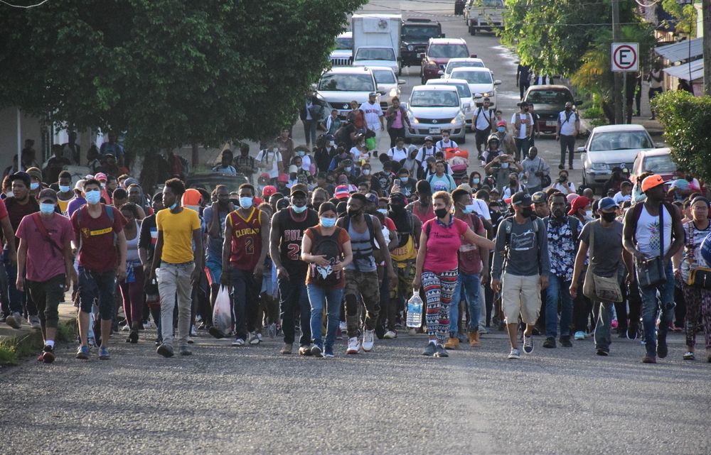9月4日,在墨西哥恰帕斯州塔帕丘拉,一些中美洲国家民众以搭乘顺风车和步行等方式前往美墨边境,寻求入境美国。(新华社发,达米安·桑切斯摄)