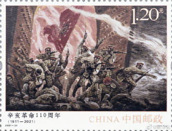 【#中国邮政发行辛亥革命110周年纪念邮票#】中国邮政10日发行《辛亥革命110周年》纪念邮票一套1枚,全套邮票面值1.20元。邮票计划发行数量为670万套。