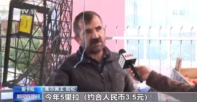 当地居民 杜尔孙·伊什莱尔:黄瓜去年每公斤卖1到1.5里拉(约合人民币0.7到1.1元),问问摊主现在卖多少钱,每公斤7到8里拉(约合人民币5到5.7元),生活太艰难了。