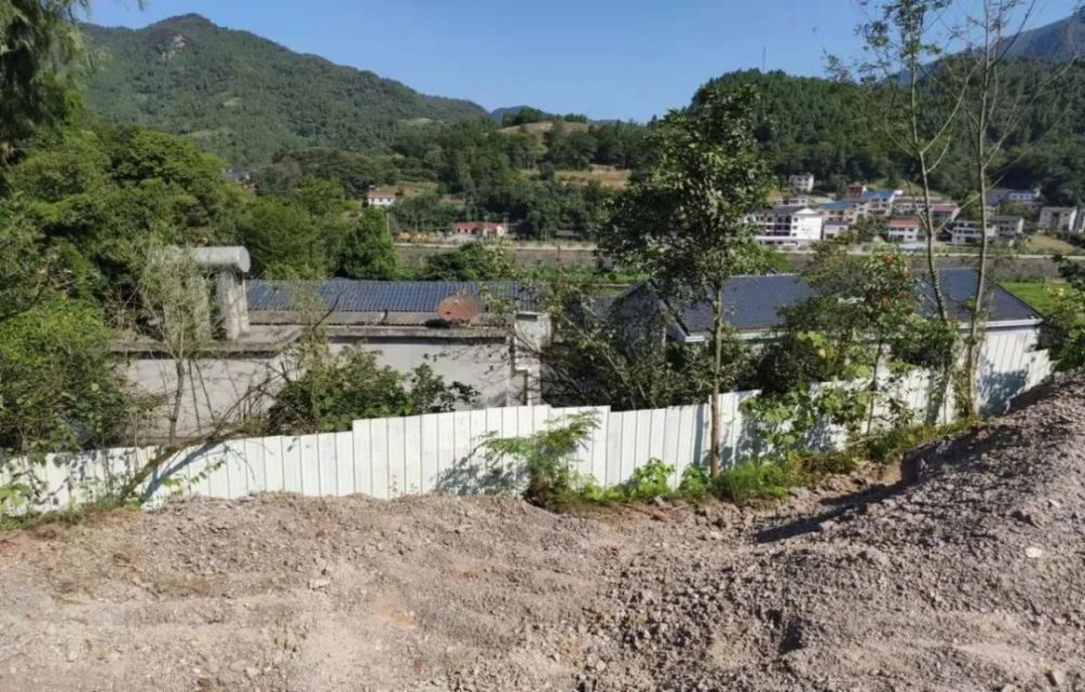 长阳县龙舟坪镇黄家坪村开挖的山体紧靠村民房屋。督察组供图