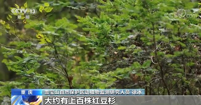央视网消息:日前,科研人员在重庆雪宝山国家级自然保护区内发现大规模国家一级保护植物——野生红豆杉。
