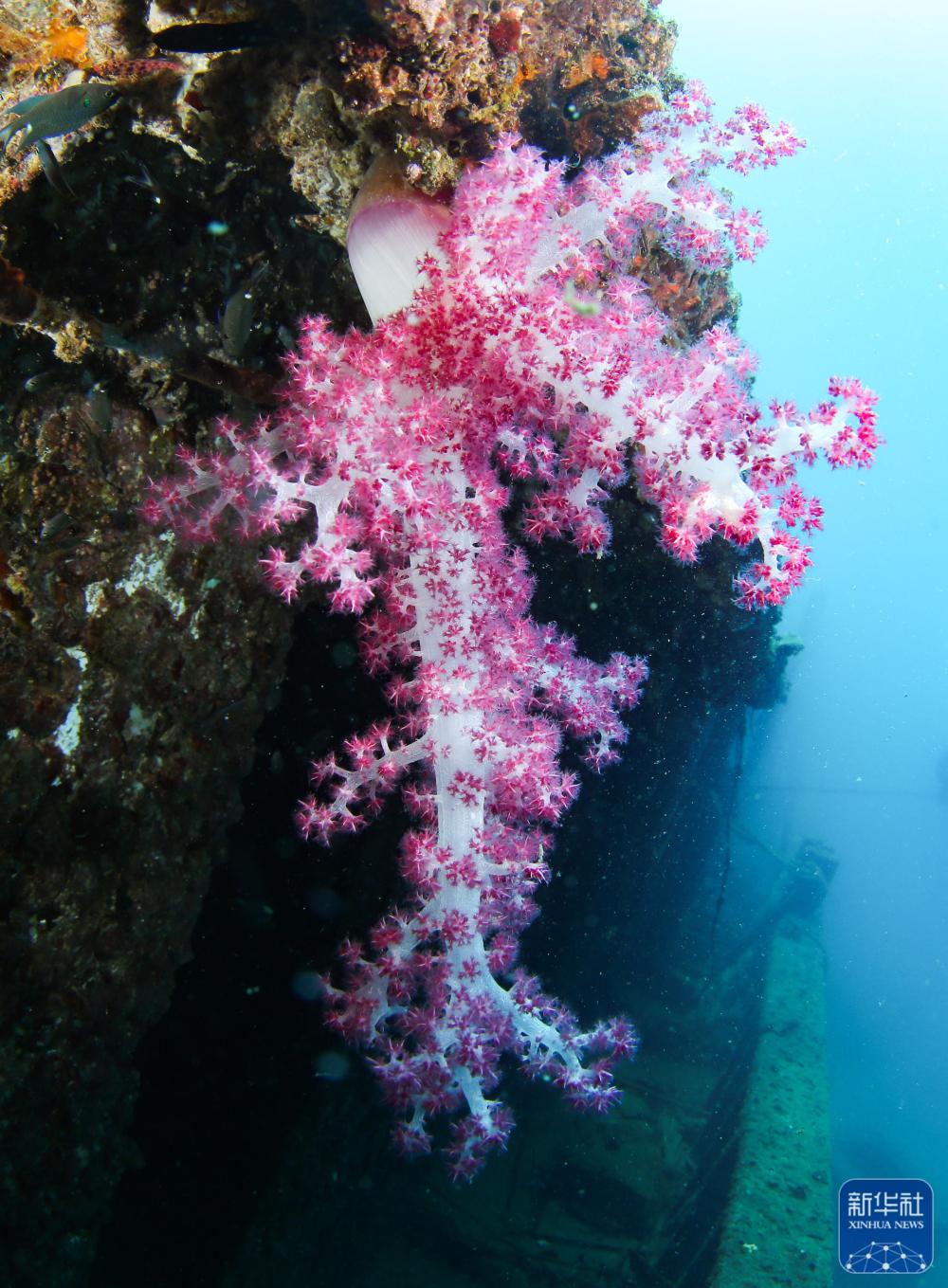 ↑这是在分界洲岛海域拍摄的软珊瑚(9月29日摄)。新华社记者 杨冠宇 摄