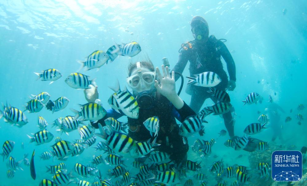 ↑游客在分界洲岛海域体验潜水(9月28日摄)。新华社记者 杨冠宇 摄