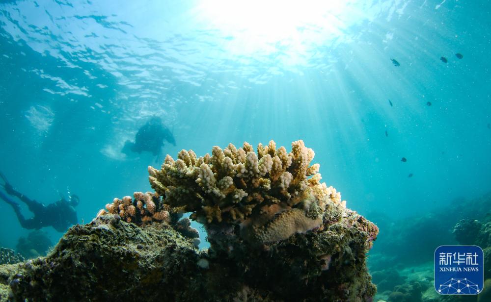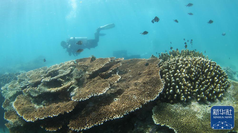 ↑这是在分界洲岛海域拍摄的鹿角珊瑚(9月28日摄)。新华社记者 杨冠宇 摄