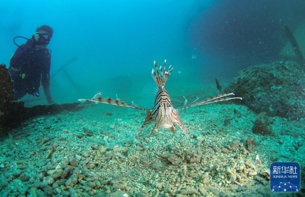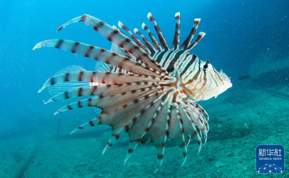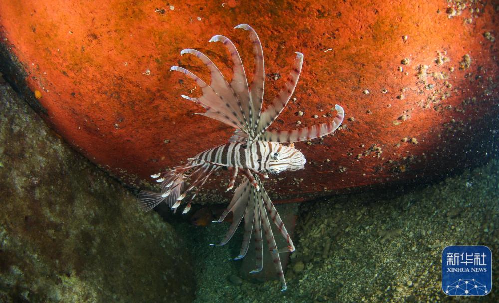↑在分界洲岛海域,一条狮子鱼在海中游动(9月29日摄)。新华社记者 杨冠宇 摄
