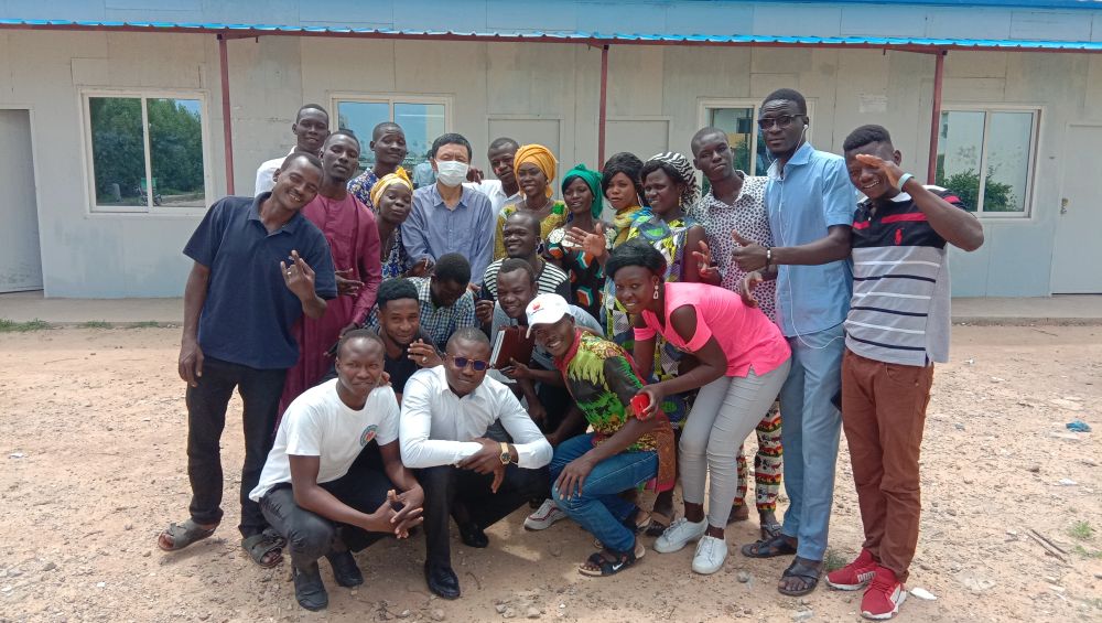 7月30日,在乍得恩贾梅纳大学,李量与毕业生在教室外合影。(受访者供图)