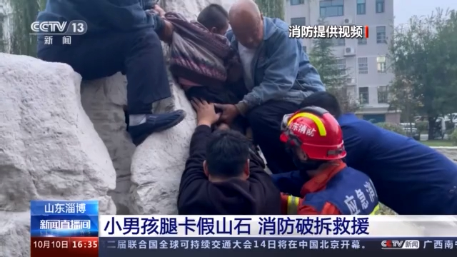 其实,这样的儿童安全问题在很多地方都有发生。前两天,在山东淄博市桓台县,一名小男孩在小区花园玩耍时,腿部被假山石头卡住,无法取出,当地消防立即赶往处置。