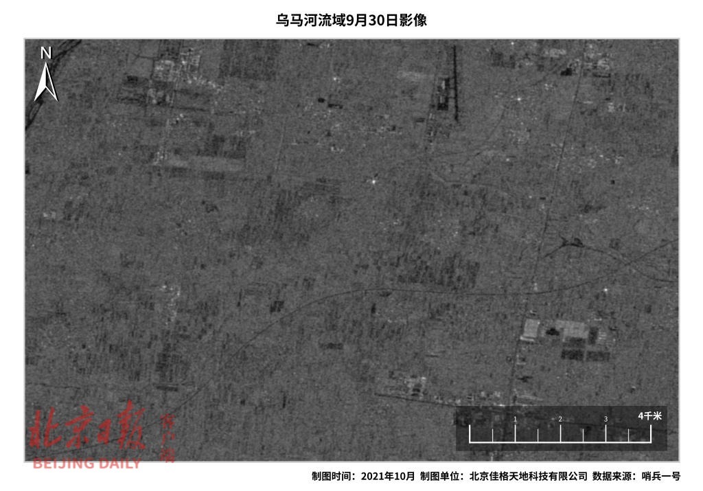 9月30日,哨兵一号拍下的乌马河流域卫星影像,当时山西还没有遭遇强降雨侵袭。