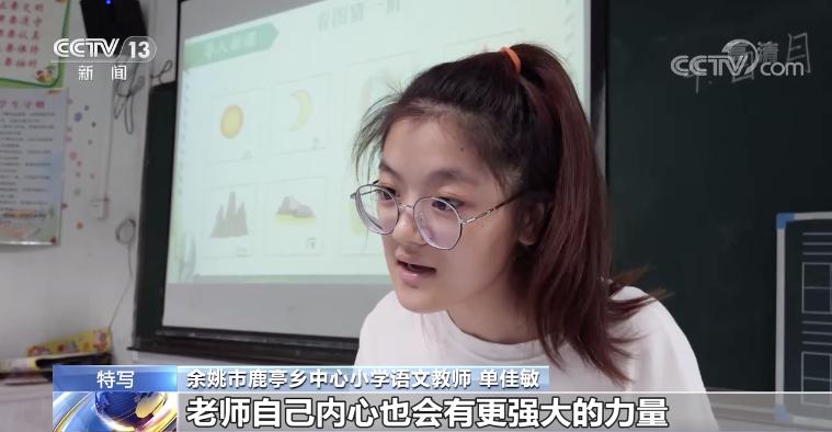 余姚市鹿亭乡中心小学语文教师 单佳敏:其实我觉得老师也是需要鼓励的,老师的鼓励来自学生的反馈,那么40个学生给你的反馈和一个学生给你的反馈,区别就在于这个孩子他给你的反馈并不会这么理想,但是你的课堂只有他一个人。