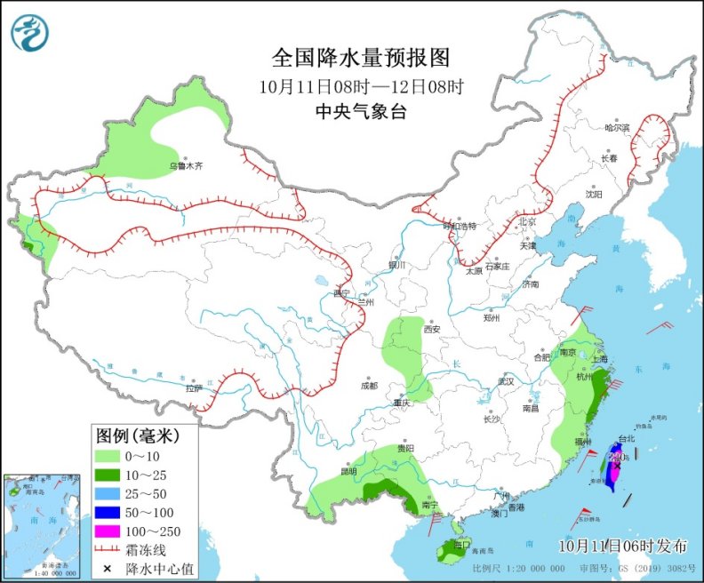 今天,台湾将率先受到“圆规”影响,出现“台风雨”,明天,随着“圆规”不断西行,风雨影响将进一步扩展至浙闽沿海、海南一带。具体来看,今天,新疆西北部的部分地区有小雨或雨夹雪;云南东南部、广西西南部、海南岛、台湾岛等地部分地区有中到大雨,其中,台湾岛中东部的部分地区有暴雨或大暴雨。