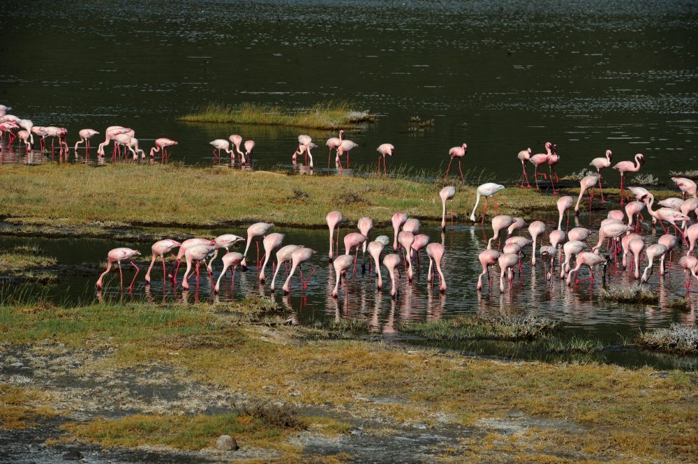 资料照片:火烈鸟栖息在肯尼亚博格利亚湖畔。(新华社记者丁海涛摄)