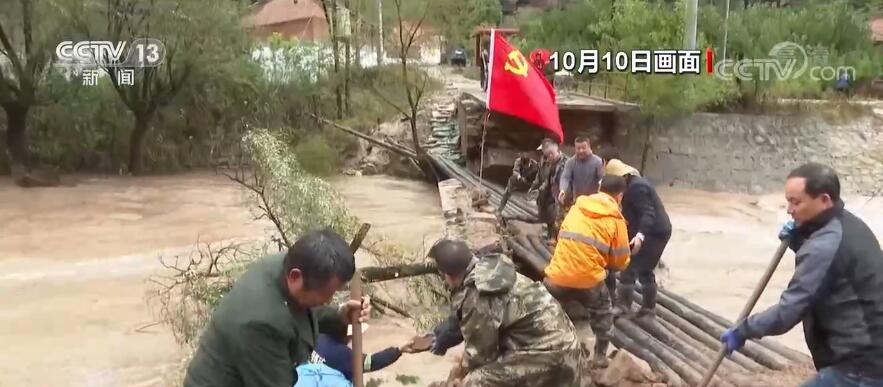 总台记者 李志:这里是延安市黄陵县双龙镇的索罗湾村。持续强降雨引发山洪泥石流,导致村庄多处基础设施被毁。大家看我身后,这座桥是村民进出村的唯一通道,已经被大水彻底冲毁。当地政府正在组织干部群众抢修一座便桥,方便村民出行,也方便救灾物资的运送。