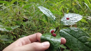 “叶上珠”,学名西域青荚叶,红红的果实煞是可爱。与大多数植物不同,它的果实不是结在枝条上,而是结在叶子上。专家介绍,这类植物的特化现象,可能是在长期的自然选择过程中,为适应环境而形成的。