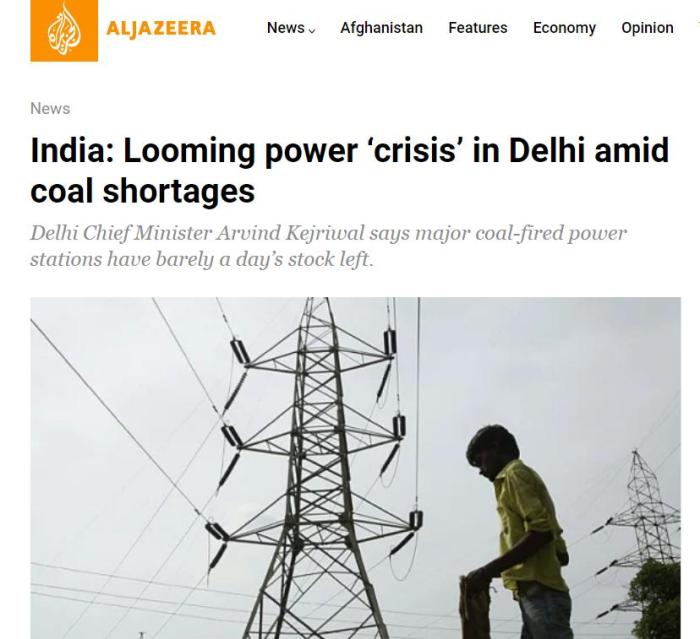 印度新德里面临电力危机。图片来源:半岛电视台新闻网(Aljazeera)报道截图。