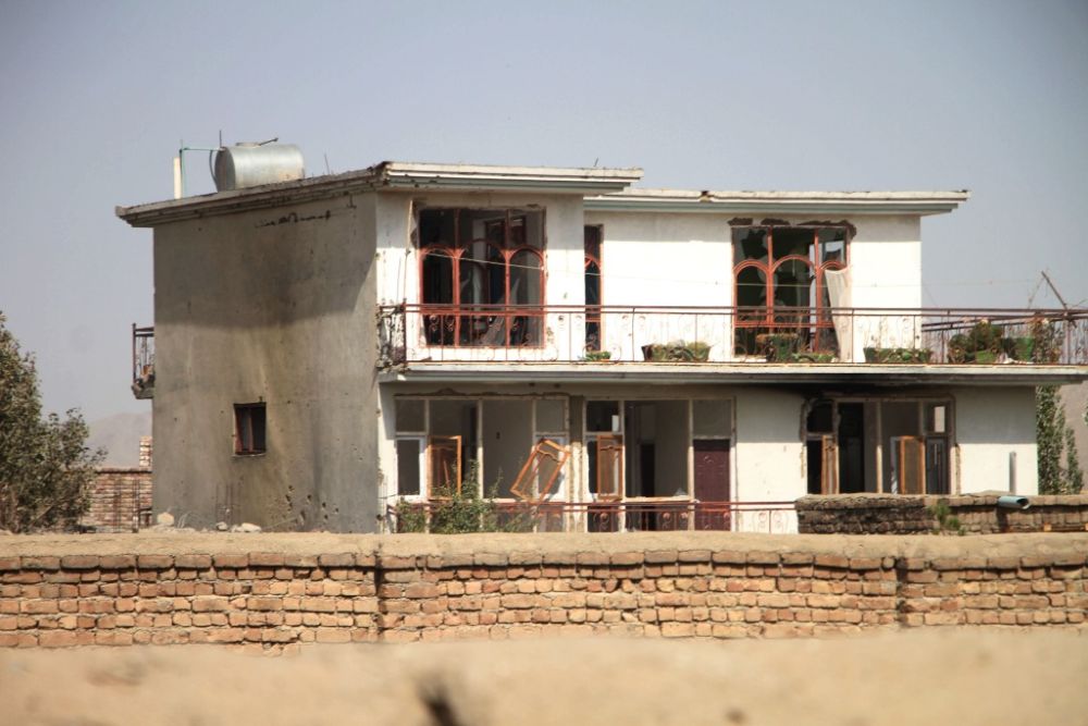 10月4日在阿富汗首都喀布尔拍摄的塔利班人员同“伊斯兰国”武装分子交火中受损的建筑。(新华社发,塞夫拉赫曼·萨菲摄)