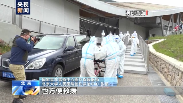 这几天,国家雪车雪橇中心正在举办雪车和钢架雪车国际训练周。在训练间隙,场馆医疗团队也进行相应的医疗应急演练。