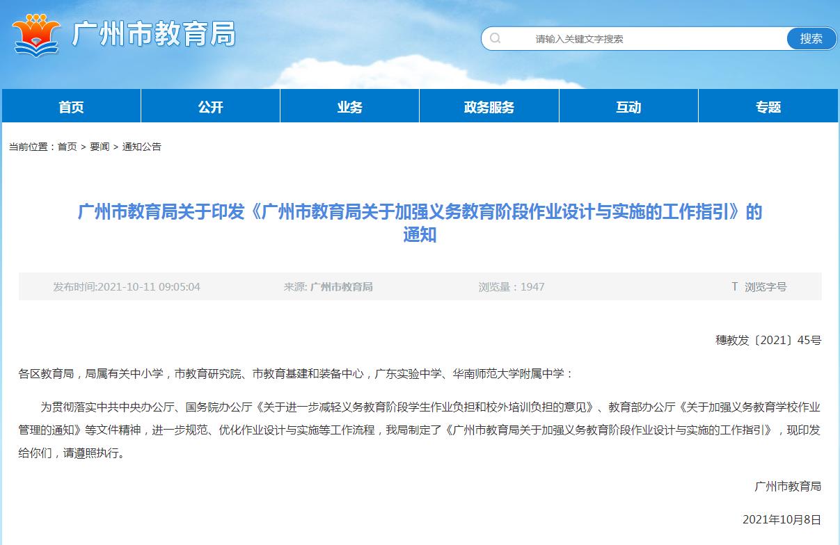 10月11日,《广州市教育局关于加强义务教育阶段作业设计与实施的工作指引》(下称《指引》)正式出炉。《指引》提到,要有效实现“减负提质增效”目标,使学生过重作业负担1年内有效减轻、3年内减负成效显著。