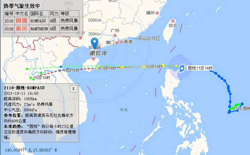 10月11日,记者从湛江海事局获悉,受今年第18号台风“圆规”影响,琼州海峡12日12时起偏东转东北风9-10级,阵风11-12级。