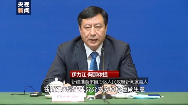 新疆维吾尔自治区人民政府新闻发言人 伊力江·阿那依提:在新疆只要本本分分安安稳稳地做生意,不管是哪个民族,他们的合法权益都会依法得到充分的保障。但对于那些以做生意为掩护,背地里参与恐怖组织,帮助恐怖活动等犯罪人员,不管是什么民族什么身份,都必将受到法律严惩。