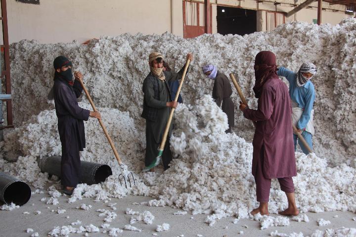 9月19日,工人们在阿富汗昆都士省昆都士一家棉花加工厂工作。(新华社发,阿杰马勒·卡卡尔摄)