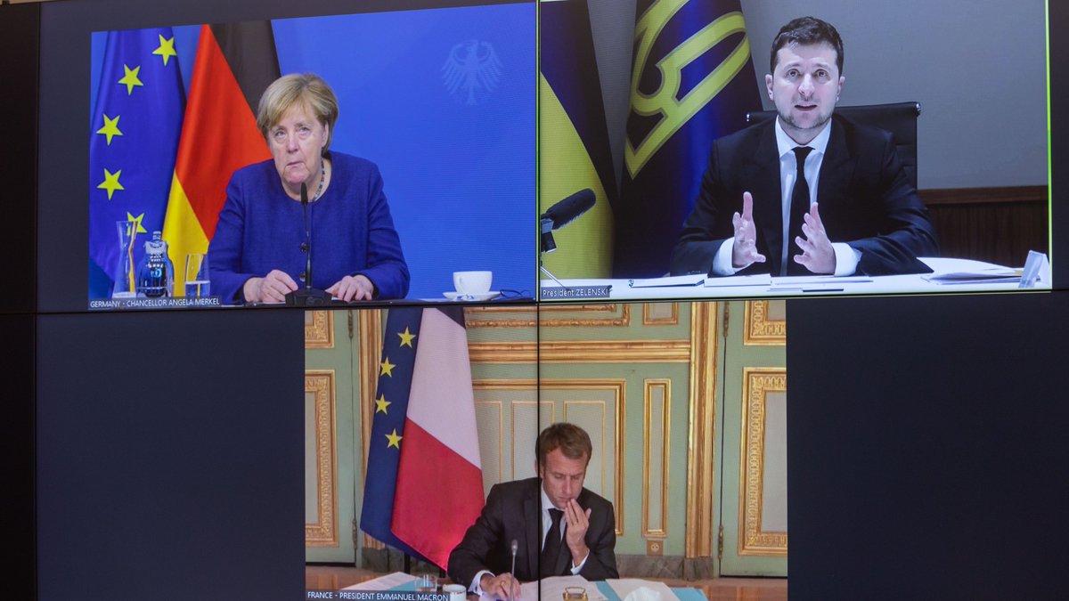乌克兰国家通讯社当地时间11日报道称,乌克兰总统泽连斯基当天与法国总统马克龙以及德国总理默克尔举行了视频会议,就乌东部局势以及加紧筹备旨在解决东部顿巴斯问题的法、德、俄、乌“诺曼底模式”峰会等进行了磋商。