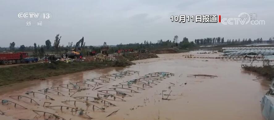 总台记者 谭海梅:我现在所在的位置就是其中一处漫堤决口处,它位于大荔朝邑镇的紫阳村。我们从现场指挥部得到的消息,目前这里已完成抢堵道路整修,大型的物料运输车辆可以进入,目前已经回填堤防西侧缺口6米。和10日相比,北洛河上游来水有所回落,这也为接下来的封堵工作带来有利条件。