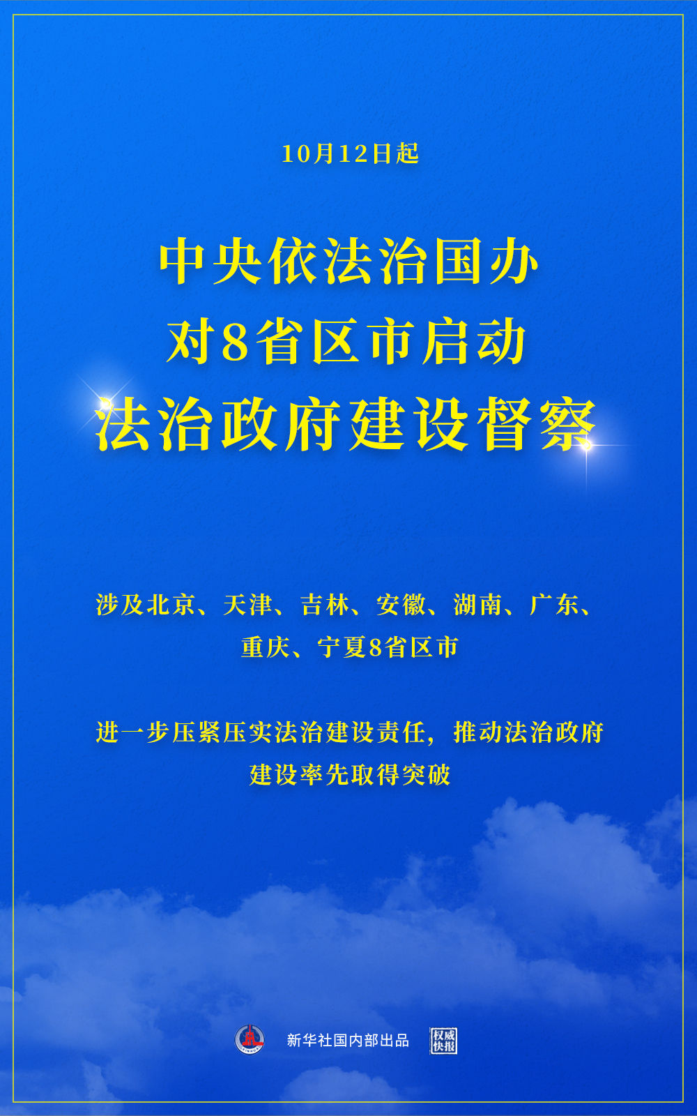 赴8省区市开展为期一周的法治政府建设督察。