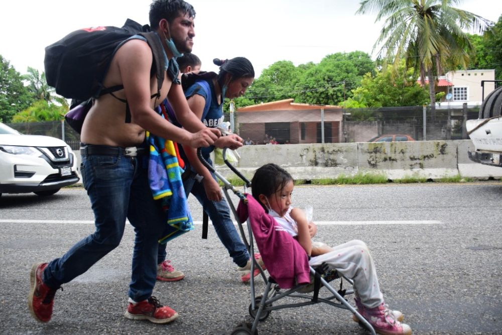 9月4日,在墨西哥恰帕斯州韦韦坦,“移民大篷车”队伍向美国进发。(新华社发,达米安·桑切斯摄)