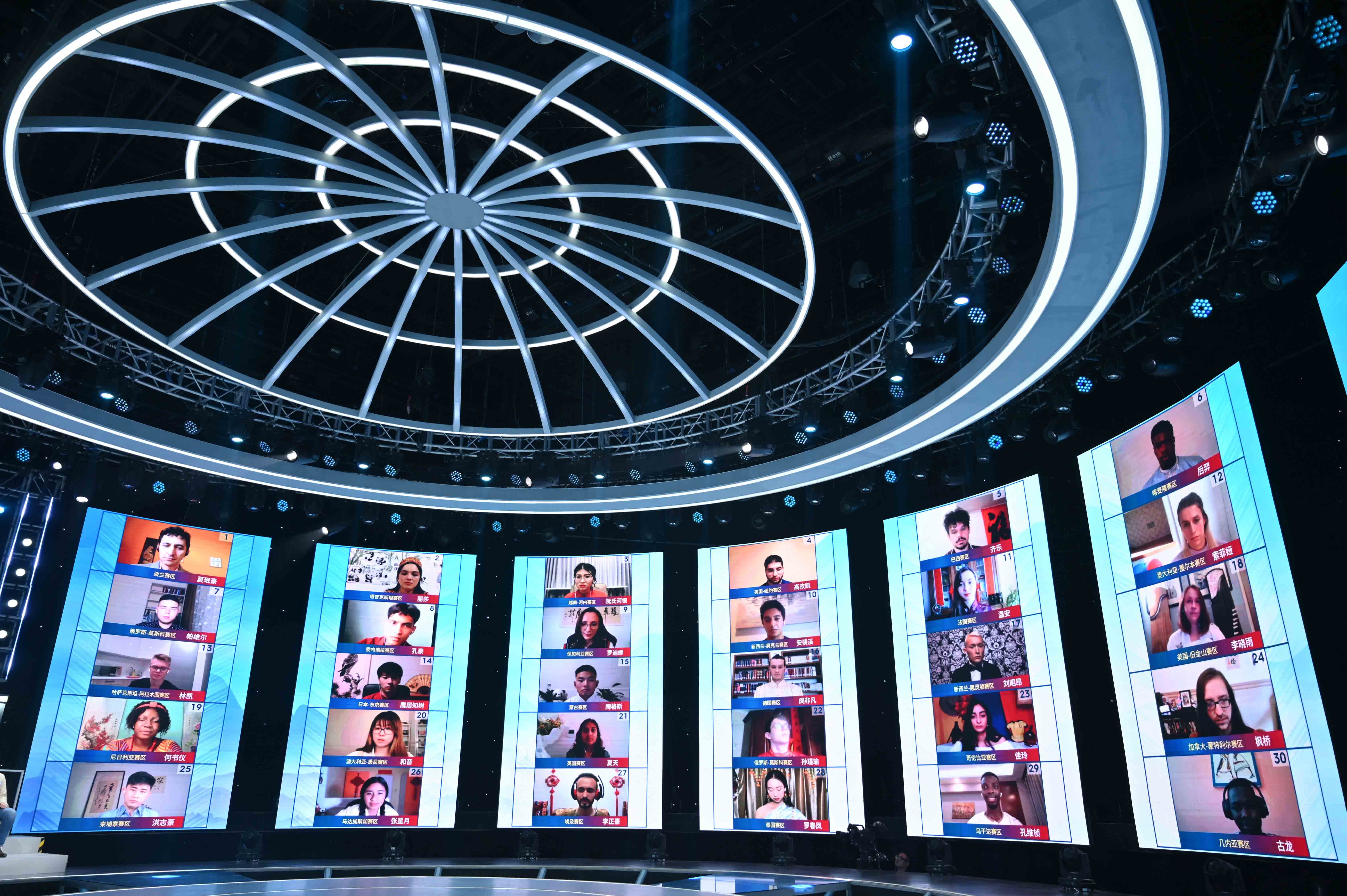 “明月几时有,把酒问青天,不知天上宫阙,今夕是何年……但愿人长久,千里共婵娟。”10月9日,在大洲突围赛第二场比赛录制现场,五大洲选手云端合唱《水调歌头》,通过歌曲演绎中国经典词作,表达对中华文化的喜爱。