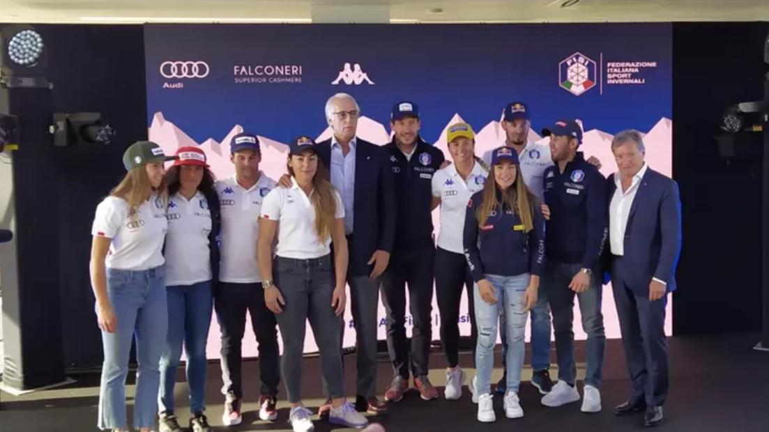 △意大利奥委会主席马拉戈(中间白发者)出席意大利冬季运动联合会活动 图片来源:意大利《新闻报》