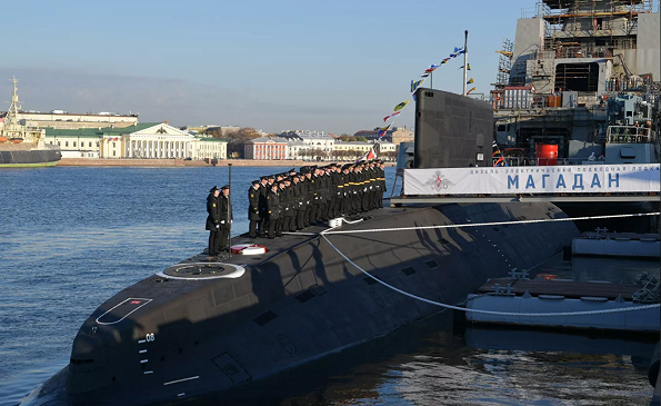 据俄新社报道,当地时间12日,俄罗斯海军在圣彼得堡接收了一艘636.3型柴电常规动力潜艇“马加丹”号。