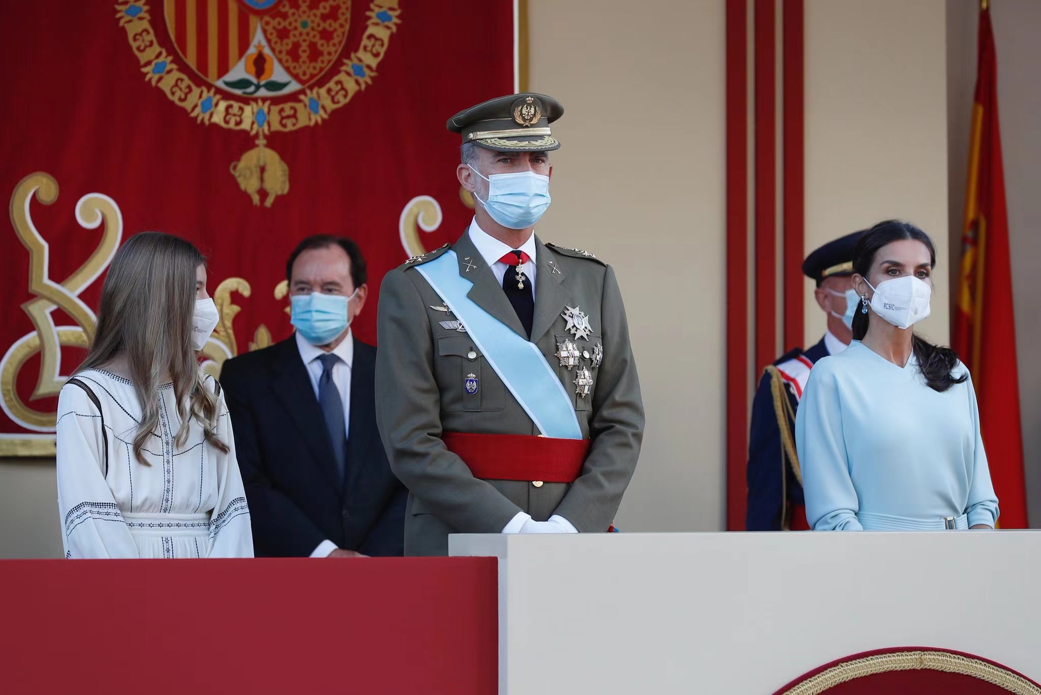 当地时间10月12日上午,在西班牙国王费利佩六世和王后莱蒂齐亚共同主持下,西班牙国庆日武装部队阅兵仪式在西班牙首都马德里举行。阅兵仪式在当地时间12日上午10时30分开始,西班牙王室和内阁成员、众议院和参议院以及社会各界代表等群体参与了阅兵仪式。