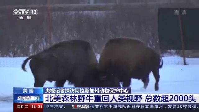 经过野生动物保护区多年的努力,现在北美洲野生森林野牛的数量已经有超过2000头。目前,阿拉斯加州野生动物保护中心里有25头北美森林野牛。根据工作人员介绍,北美森林野牛的种群恢复和扩大,对维护生态系统平衡也有重要的作用。