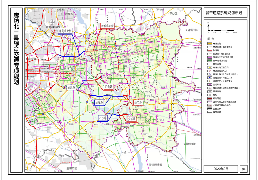 10月12日,京冀两地交通部门在三河市签订通宝路接线协议,标志着通州区与北三县4条跨界骨干道路全部进入实质性实施阶段。据了解,通州区与北三县跨界骨干道路分别为大厂县厂通路、三河市神威北大街、香河县安石路、香河县通宝路。这4条跨界道路总长29.7公里,总投资达到62.7亿元,其中河北段共计13.8公里,投资45.1亿元。上述项目已纳入《京津冀协同发展交通一体化规划(2019-2035年)》《北京市通州区与河北省三河、大厂、香河三县市协同发展先行启动重点事项》和《廊坊北三县综合交通专项规划》。