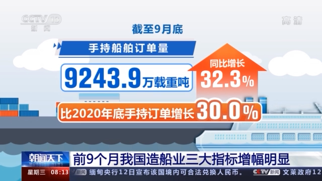 昨天(12日),中国船舶工业行业协会公布了今年前九个月船舶行业的经济运行数据,数据显示,今年前九个月,我国造船企业三大造船指标增幅明显。