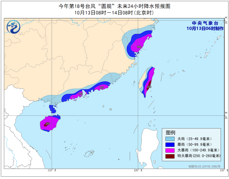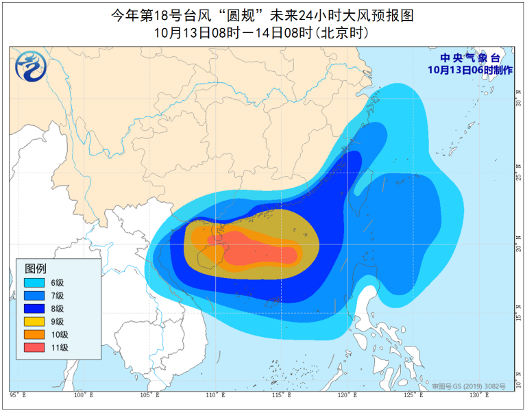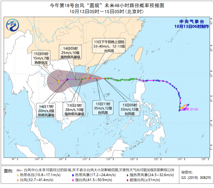 央视网消息:来关注台风“圆规”。中央气象台今早(10月13日)6时发布台风橙色预警:今年第18号台风“圆规”已于今天早晨5时由强热带风暴级加强为台风级,今早8时其中心位于南海西北部海面,距离海南省万宁市偏东方向约275公里,中心附近最大风力有12级。预计,“圆规”将以每小时30公里的速度向偏西方向移动,强度还将有所加强,将于今天下午到晚上在海南文昌到陵水一带沿海登陆,登陆强度为台风级。登陆后,强度逐渐减弱,穿过海南岛,14日凌晨移入北部湾,然后趋向越南北部。