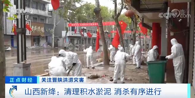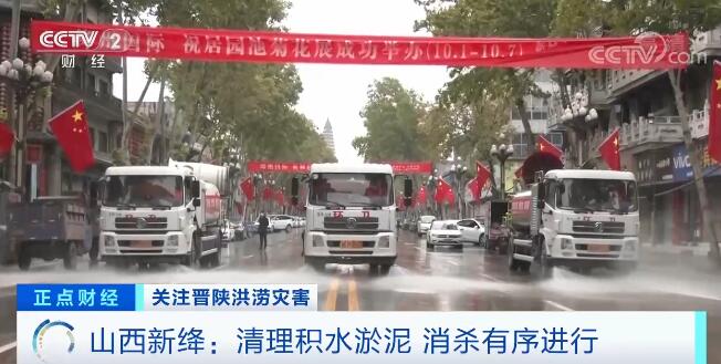 总台记者 赵颖洁:我现在所在的位置是在山西运城新绛县县城里的一条主干道上。大家可以看到,我身后这条主街道上的积水已经退去,现在主要的工作就是集中清理街道上的淤泥并进行消杀作业。