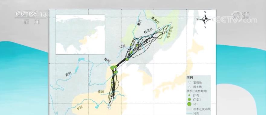 在这个迁徙路线图上,绿色的圆圈代表它们在途中停歇的地方,圆圈越大,则停留的天数越多。不难发现,停歇点密集出现在黄河入海口的附近,也就是黄河三角洲国家级自然保护区。