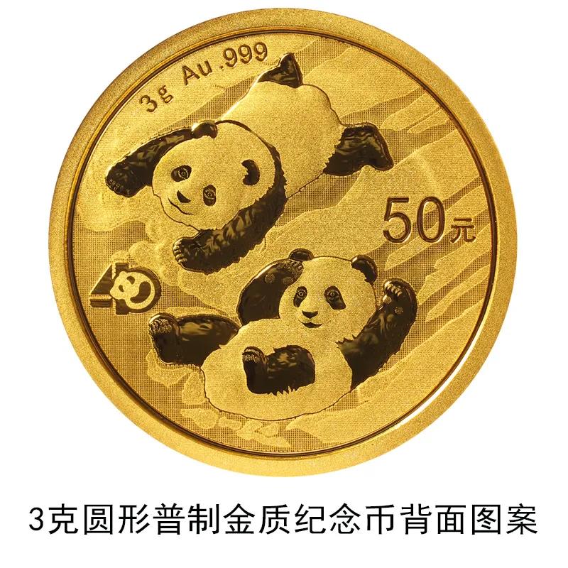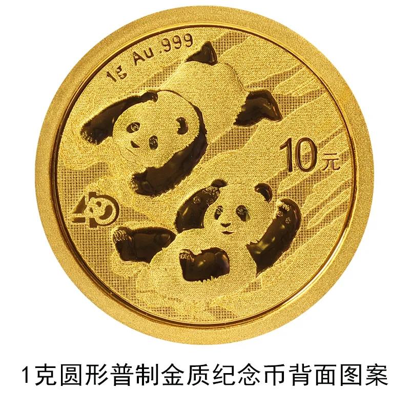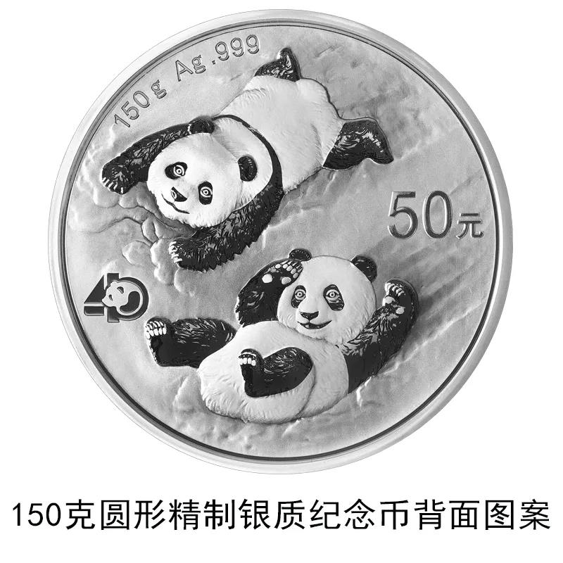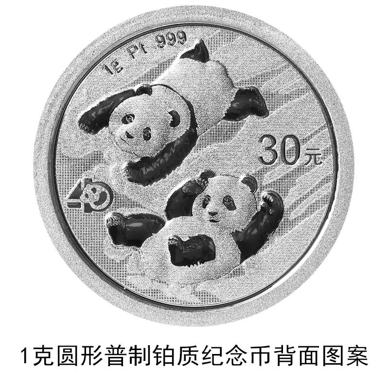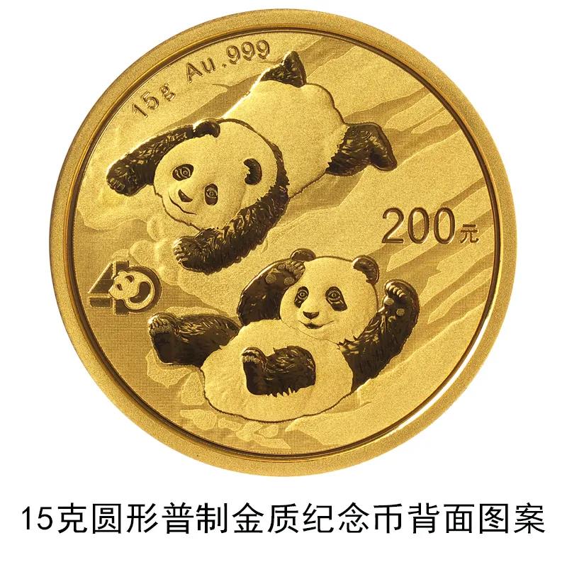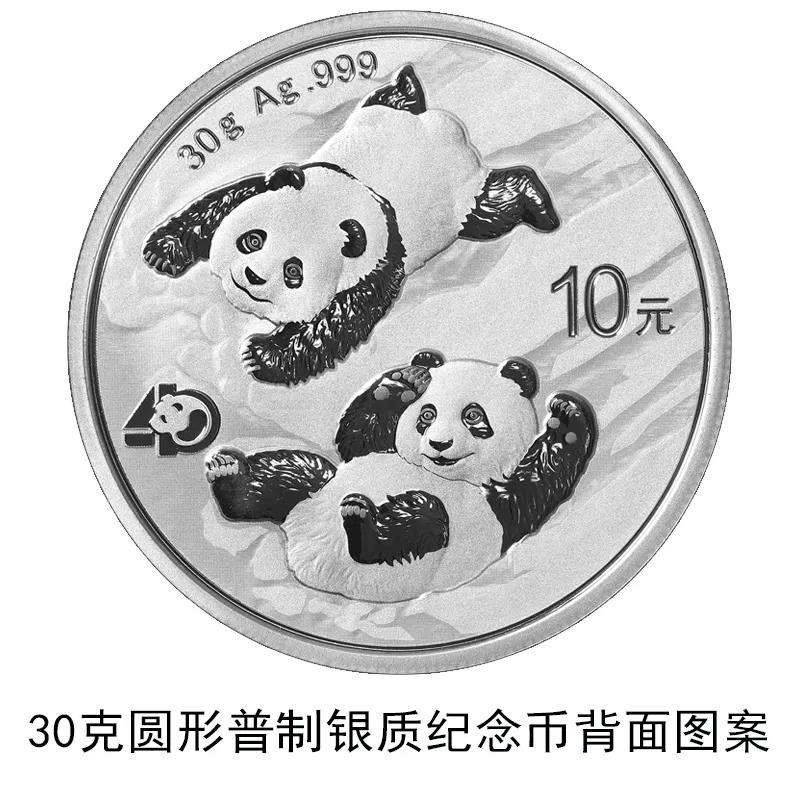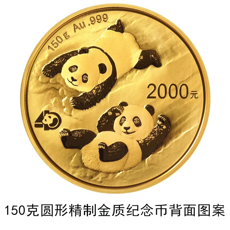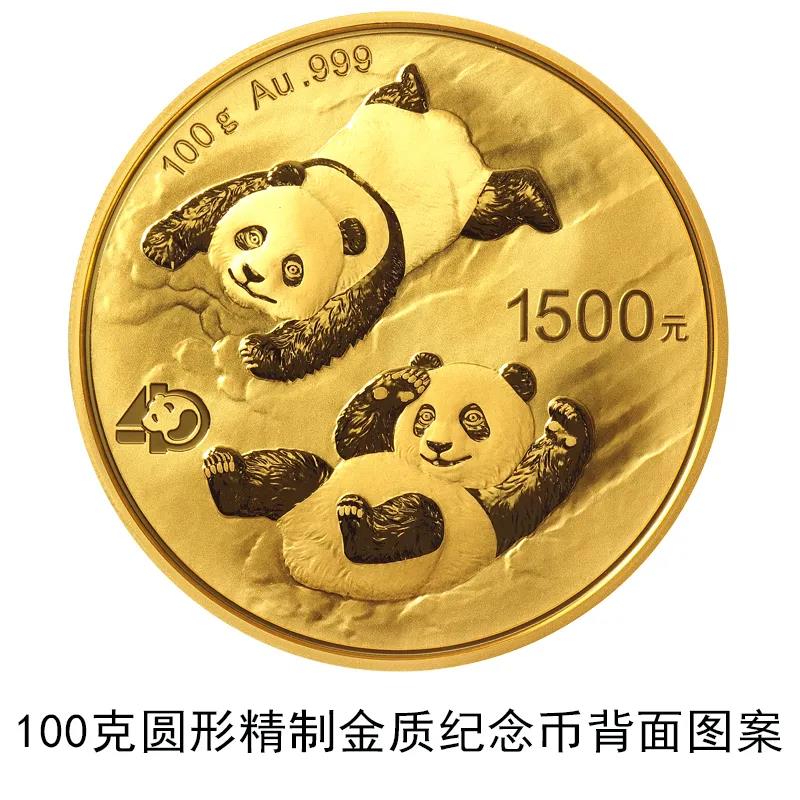 该套贵金属纪念币正面图案均为北京天坛祈年殿,并刊国名、年号;背面图案均为大熊猫滑雪嬉戏场景,辅以“熊猫金币发行40周年标识”元素,并刊面额、重量及成色。