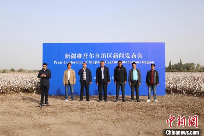 当日,新疆维吾尔自治区在当地举行“棉花丰收”专场新闻发布会。值得一提的是,此次发布会选择在尉犁县古勒巴格乡的一处棉田里进行,6位来自当地的棉农,在最熟悉的棉田里讲述他们与棉花的故事。