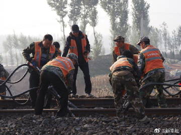 #山西境内南同蒲铁路昌源河大桥双线抢通#【山西境内因暴雨洪水受损的南同蒲铁路昌源河大桥双线抢通】记者从中国铁路太原局集团有限公司获悉,14日7时36分,南同蒲铁路昌源河大桥实现双线抢通。铁路部门表示,南同蒲铁路双线开通后,各次列车的运行秩序将逐步得到恢复。(记者许雄)