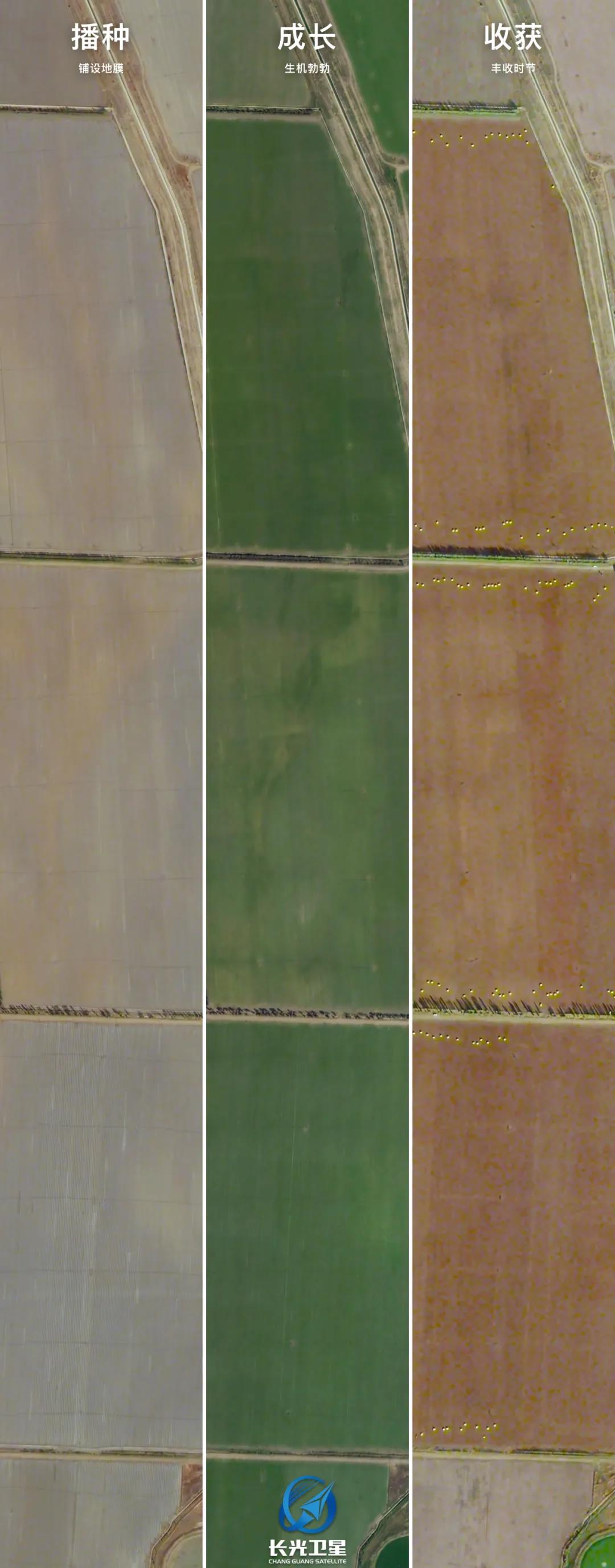 下图为卫星视角记录下的新疆棉田,从棉花播种到成长,再到收获各个时期的状态。