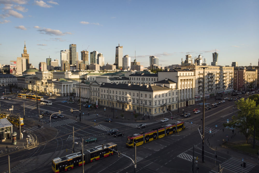 2020年5月21日在波兰首都华沙拍摄的银行广场鸟瞰图。(新华社发,亚普·阿里恩斯摄)