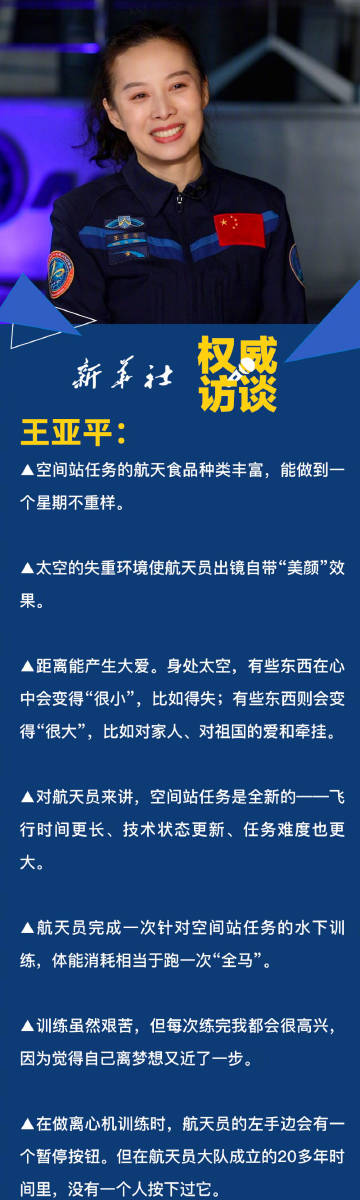 【满满的爱!#王亚平说再上太空为女儿摘星星#】中国空间站首位女航天员王亚平此前接受@新华社记者张扬 采访时说,如果能再上太空,她会带着女儿送的礼物,还要为女儿“摘星星”回来,不能食言。戳图↓一起了解王亚平的梦想与热爱。#怎样成为一名空间站女航天员# #新华社记者张扬探秘神十三#