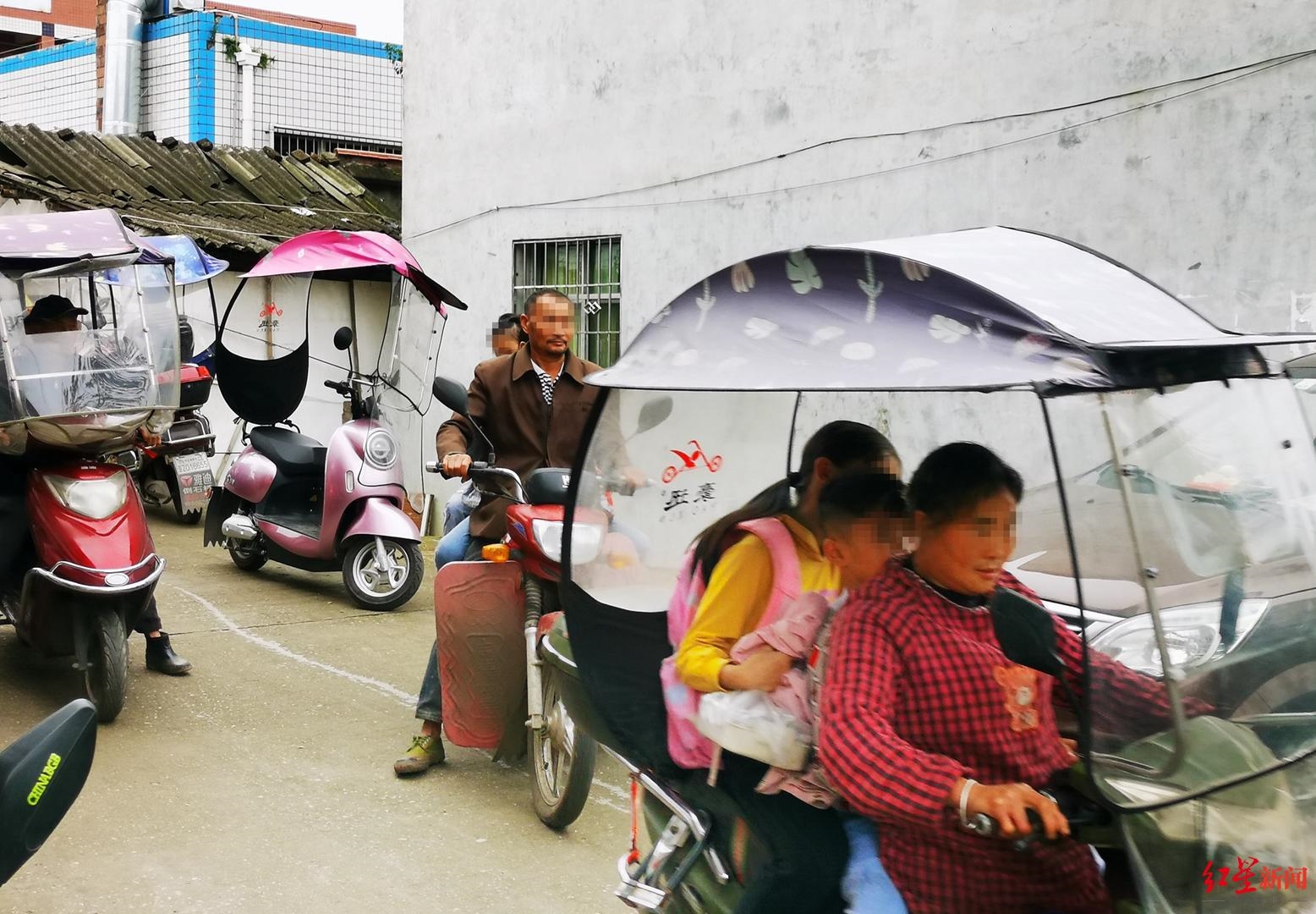 10月12日,红星新闻记者在宜古寺村走访了解到,9月初开学后,因班车停运,刚开始徒步上学的学生稍多一些,目前绝大部分家长都选择了骑电瓶车、摩托车接送孩子,或出钱让孩子搭乘他人的面包车等。