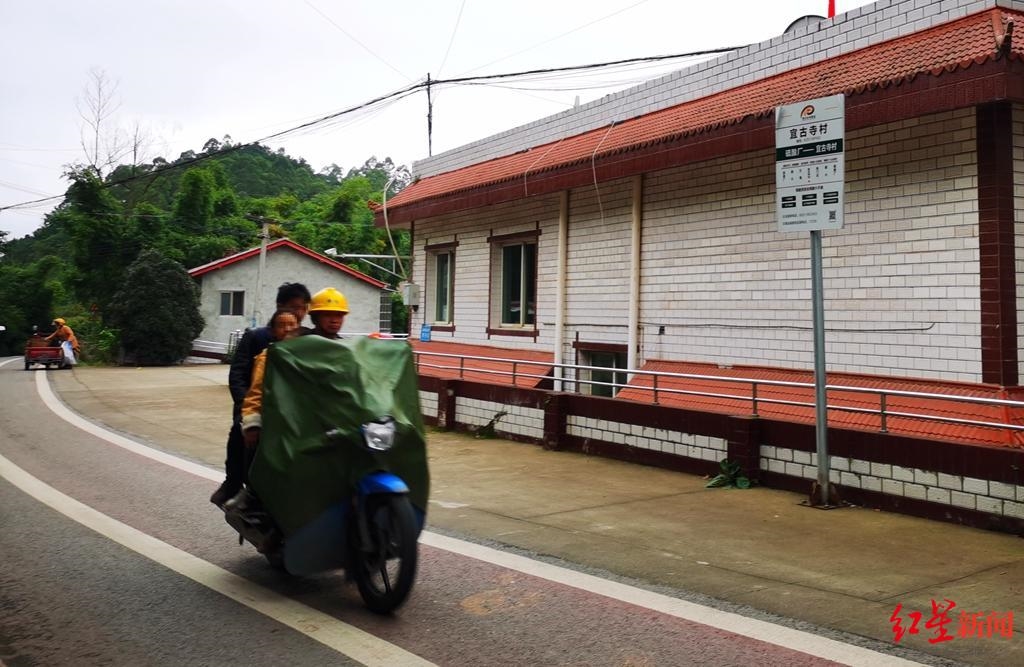 “走回去,差不多还要1个小时。”10月12日17时45分许,在国道321线通往宜古寺村等村的岔路口,两名正走路回家的初中生告诉红星新闻,他们来自牌合村(现已并入莲池铺村)。
