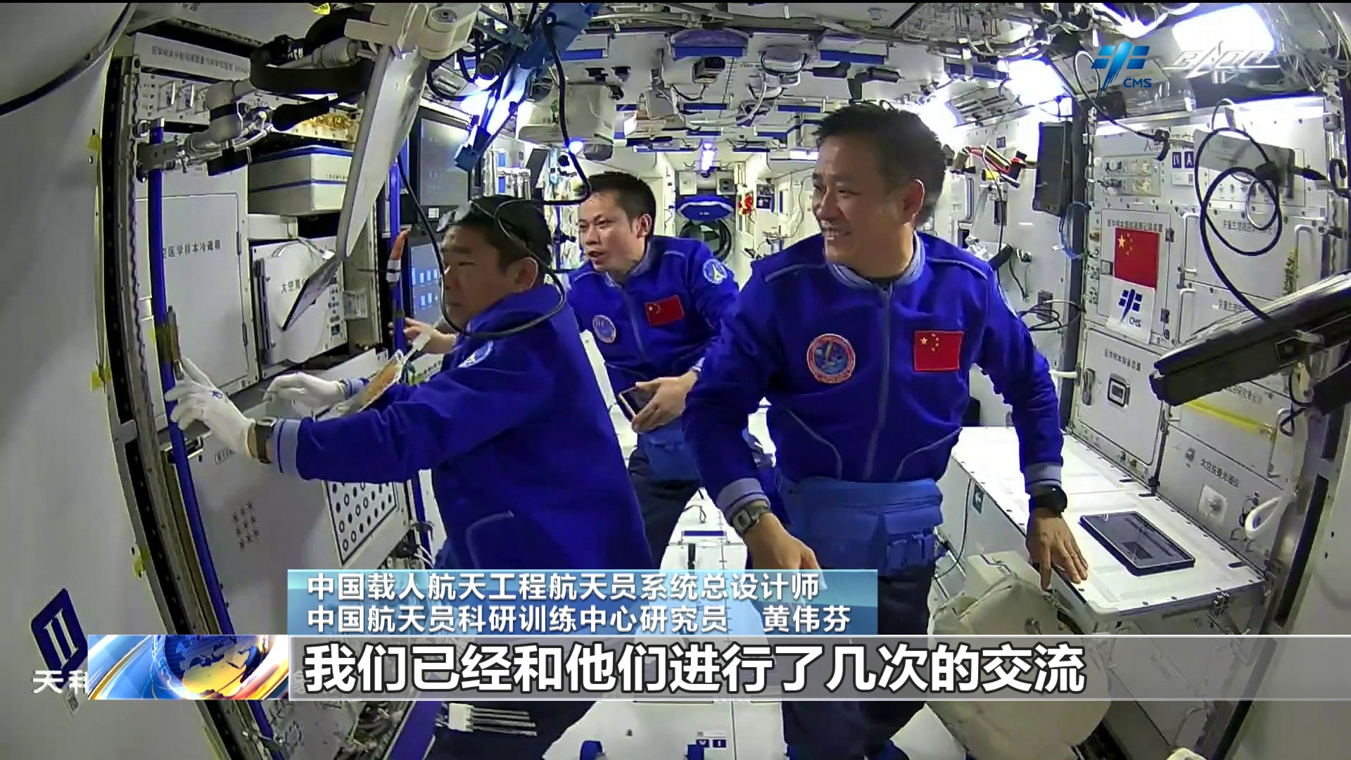 黄伟芬:把他们相关在轨的,比如物资整理情况都做了全面介绍。所以神舟十二号乘组在轨积累的经验包括一些操作技巧都传授给了神舟十三号乘组,包括神舟十四号乘组、神舟十五号乘组和其他航天员。