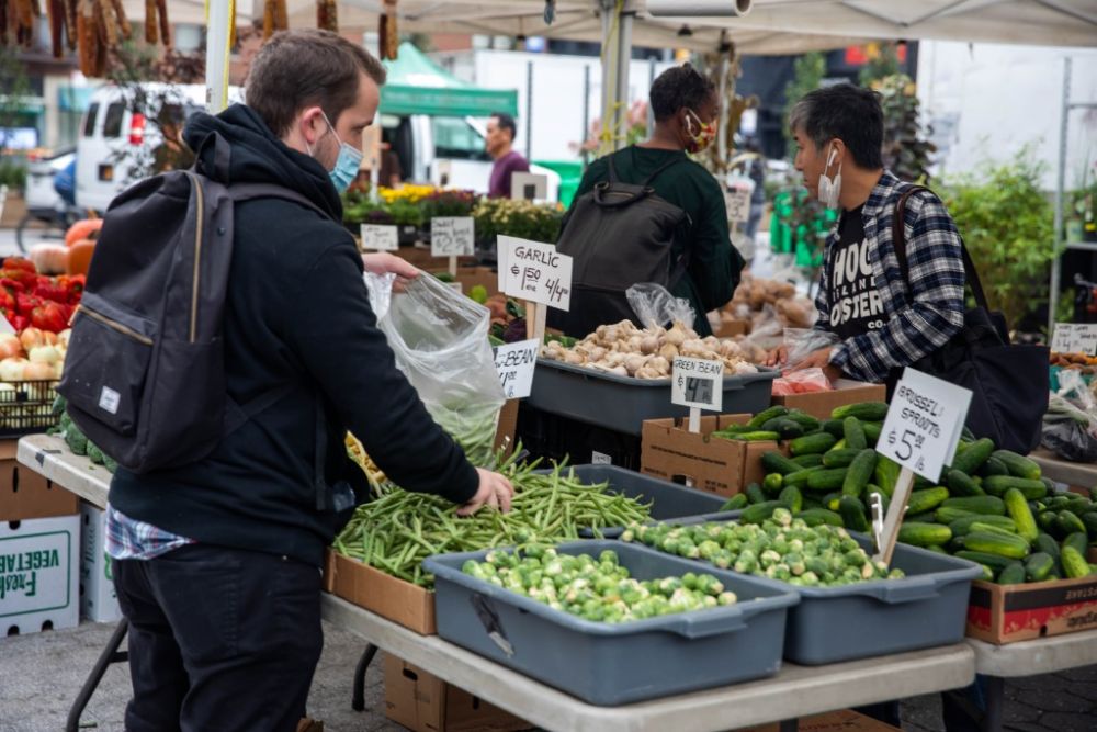 10月13日,人们在美国纽约一处农贸市场购物。(新华社发)