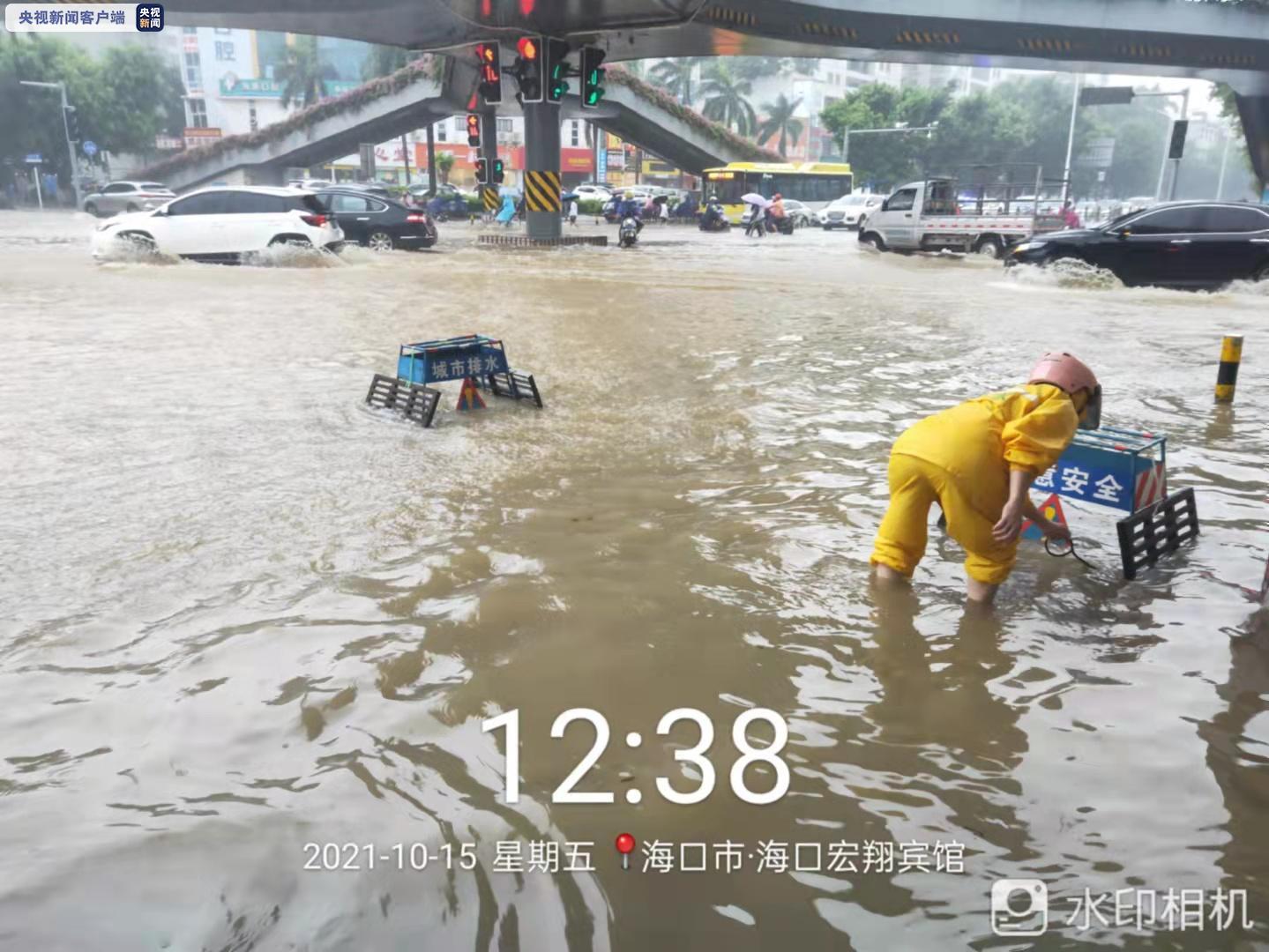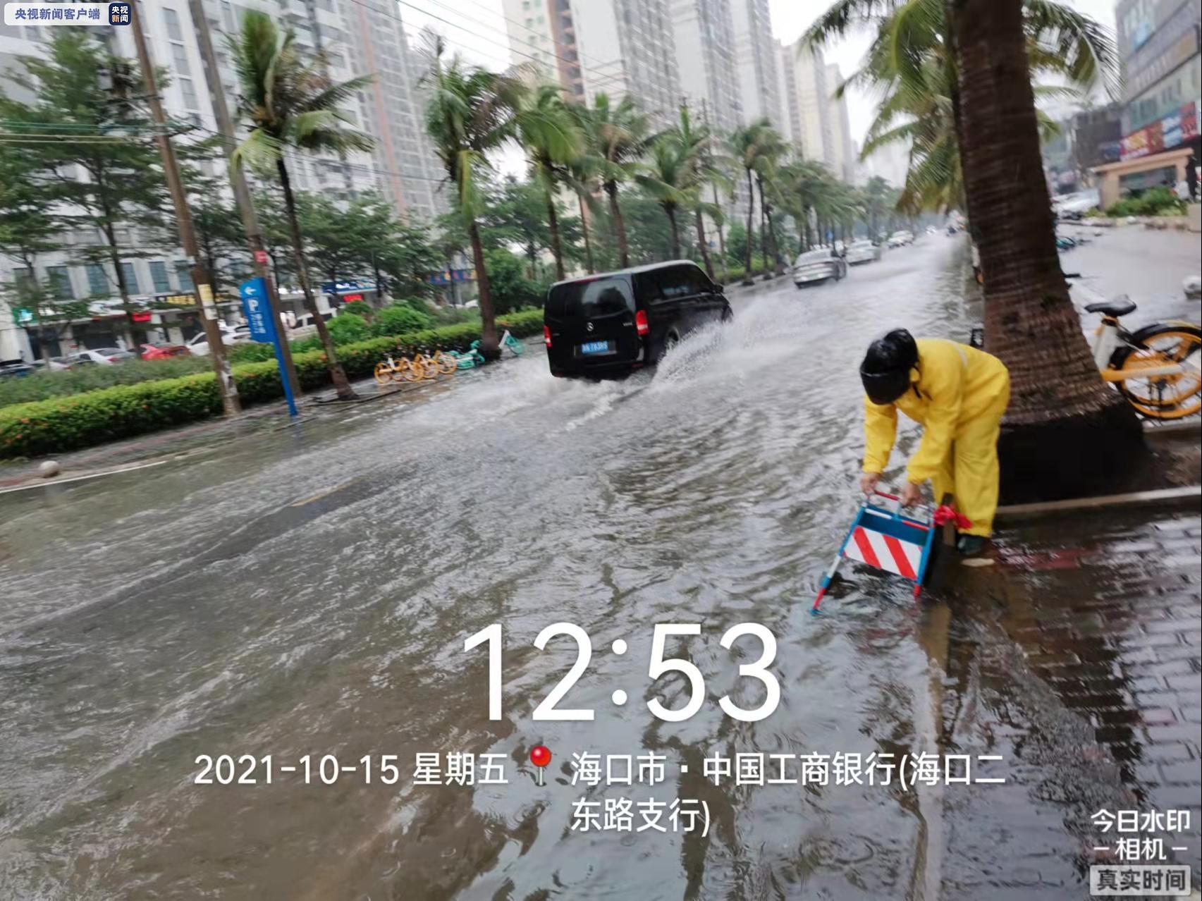 受强降水影响,截至12时50分,海口市区已有多条道路积水,排水中心人员正在全力强排。
